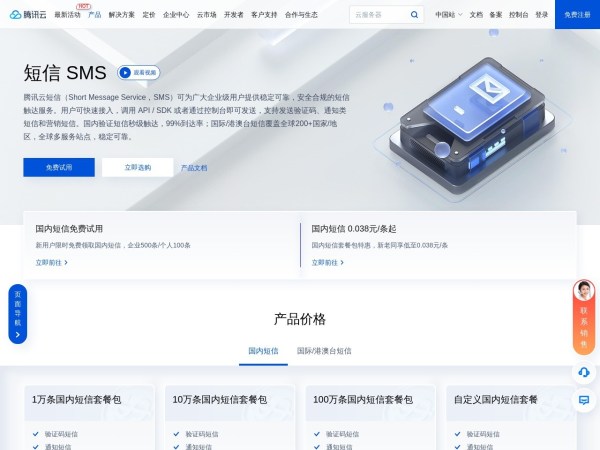 腾讯云旗下短信发送服务