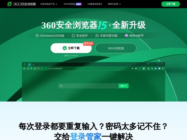 360安全浏览器(360SE),安全、放心的浏览器,网购首选!360安全浏览器采用先进的恶意网址拦截技术,可自动拦截挂马、欺诈、网银仿冒等恶意网址。360安全浏览器强大、好用、设计人性化、安全快速!安全上网不中招,就用360安全浏览器