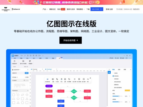 A股上市公司万兴科技旗下亿图软件可让您轻松绘制流程图,思维导图,信息图,组织架构图,网络拓扑图,户型图,电路图等210种绘图类型。上万模板免费下载,一定程度可替代Visio。广泛应用于办公教育领域。