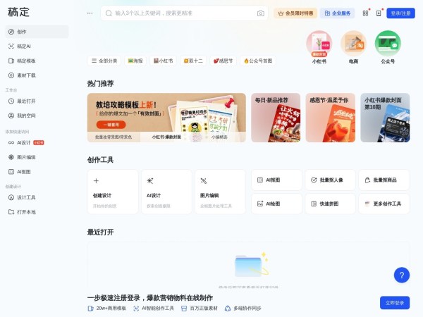 作为免费图片及海报在线编辑器,支持京东、拼多多、淘宝、天猫、抖店、快手、1688等电商平台,提供图片制作、海报制作、精选模板、一键抠图等功能,海量素材,每日更新,轻松搞定设计!