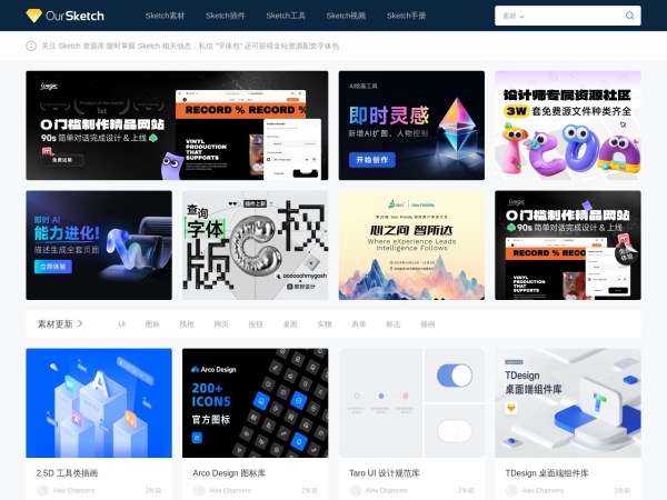 全称:OurSketch-提供Sketch软件素材|插件|教程的Sketch中文网