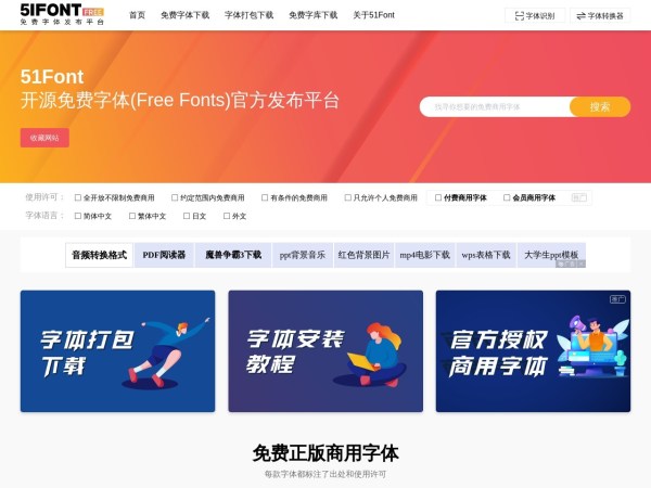 是一家提供商用字体下载授权,字体定制,免费字体下载,字体授权,中文字体设计,字体大全以及在线字体转换器的字体公司,致力于让所有人用得起正版 - 是一家提供商用字体下载授权,字体定制,免费字体下载,字体