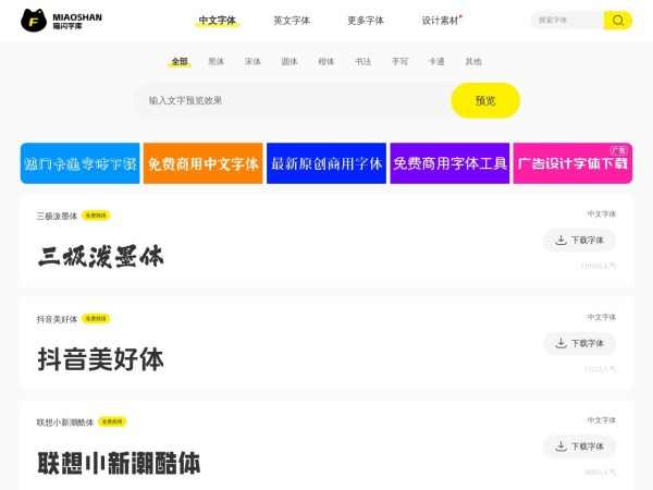 找字体的好帮手!提供中文和英文字体库下载、识别与预览服务
