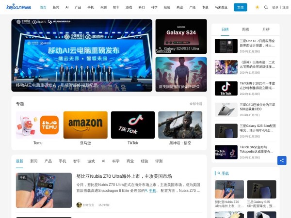 国内知名的科技媒体, 24小时滚动报道国内外最有价值的科技新闻、移动通信、IT互联网业界、数码产品、家电及智能穿戴、区块链、VR、共享经济、财经、人工智能、黑科技产品资讯,为用户提供及时权威的科技资讯。