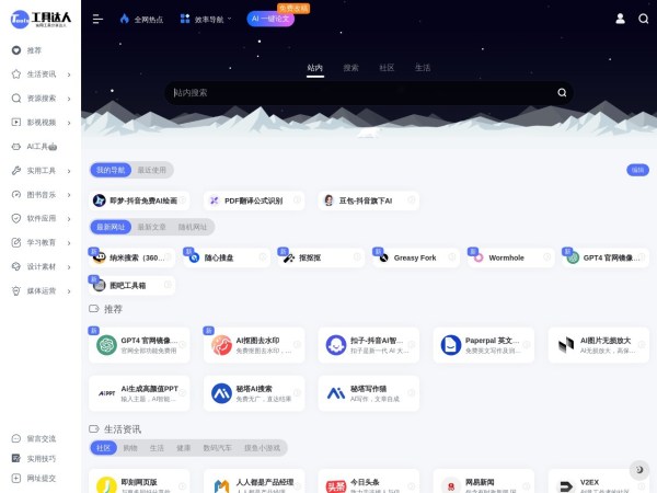 实用工具分享达人。收录影视、小说、漫画、音乐、网盘资源、学习、设计等类别的网站和应用,内容涵盖办公应用和娱乐工具。