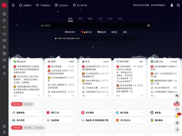 一个非常棒的私人云收藏夹网站!高价值实用网址、优质网站收录平台!收录了各种五花八门网址于一个站,整合了多个常用搜索于一个框,集便捷、简洁、高效、实用于一身,一个框的mini主页还可以设置为浏览器主页,这样一个功能丰富的导航网站:海纳百川,网罗一框!
