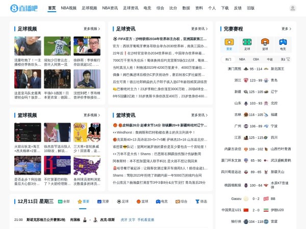 一个为各种球迷粉丝提供NBA免费直播、足球录像回放,以及乒乓球、羽毛球、排球、斯诺克直播等比赛决赛、体育世锦赛直播录像视频的网站。高清NBA直播视频、中超、欧冠、英超等足球