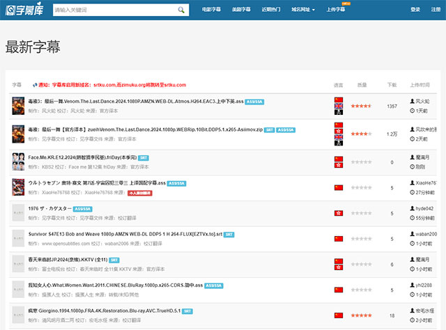 全称:字幕库(zimuku,SrtKu) -- 字幕下载网站