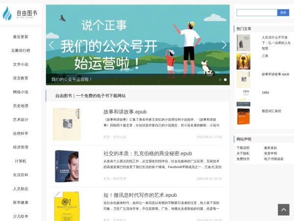 一个免费的电子书分享平台,提供kindle、epub、mobi、azw3、pdf、txt等格式电子书,全集全本打包免费下载,爱悦读网是一个值得电子书爱好者收藏的网站。