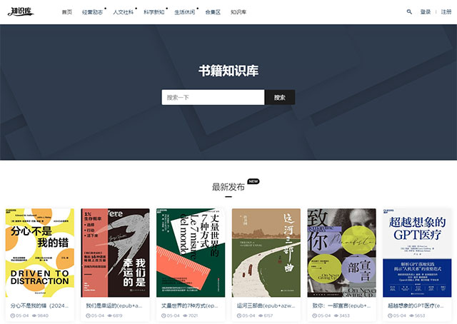 全称:书籍知识库 - 优质mobi,azw3,TXT,PDF,epub格式电子书分享站