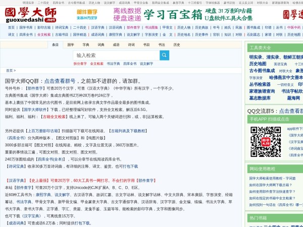 全称:国学大师网_国学网_国学迷_汉字宝典_诗词宝典_国学经典&古典文学_古今图书集成&四库全书电子版&永乐大典