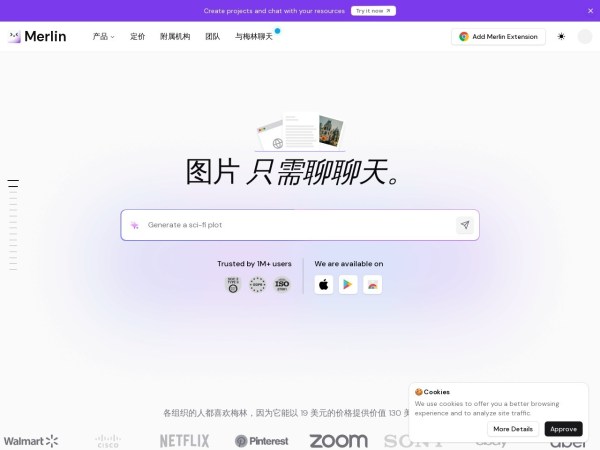 免费的人工智能聊天工具为您解答所有疑问。请 Merlin 为视频、文章、pdf 和网站做摘要,撰写电子邮件和社交媒体内容,并使用 AI 检测器审核内容。
