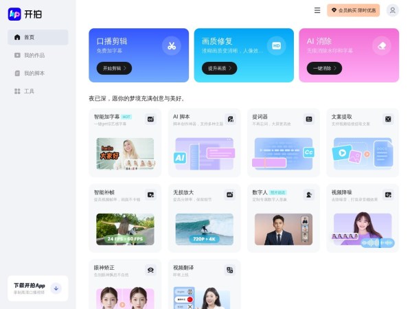 视频创作平台,以视觉AIGC为核心功能,用PPT制作的方式创作视频,为用户带来一站式、高可控的AIGC创作体验,让更多用户感受AI创作的魅力。