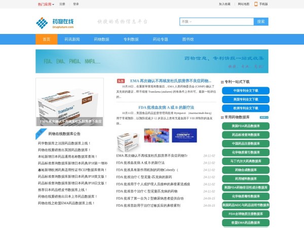 广泛、快捷的药物信息、药学资源提供平台,聚焦于全球药物研发信息,提供药物信息资讯、药物科学数据库、药物开发资源共享、专利信息检索下载等。本站旨在为广大的药学工作者,特别是从事药物研究、开发的专业人员提供快捷、专业、高效的药物信息数据。