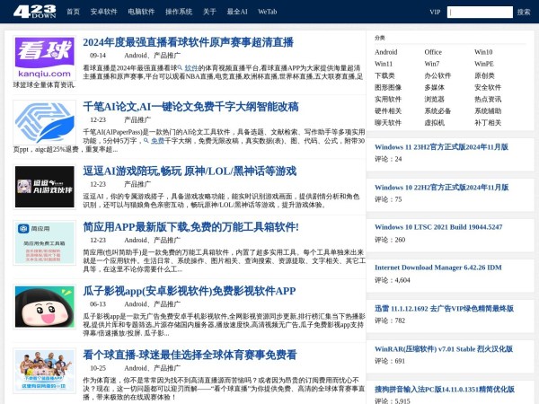 423Down官网(全称:423Down)于2024年12月24日收录在本站软件下载导航分类,并成功建立了索引服务,为用户提供查找/检索服务。