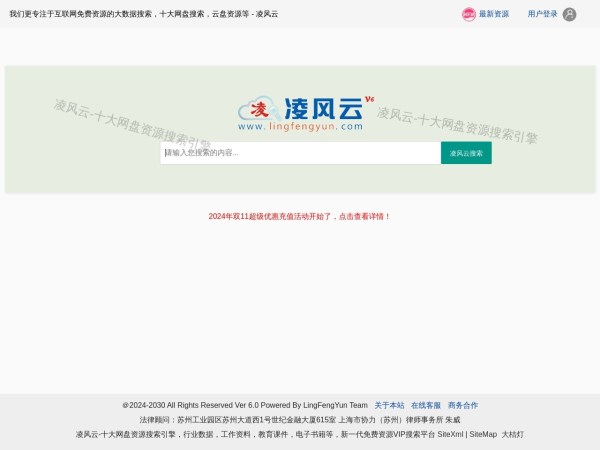 凌风云是在大数据、云计算的基础上由专业团队精心研发打造的新一代专业的免费网盘资源垂直搜索引擎,最大方便用户在大数据面前尽快找到自己想要的资源,弥补其他搜索引擎无法搜索到的缺陷,目前支持百度网盘、阿里云盘、蓝奏云盘、天翼网盘、腾讯微云、飞猫云盘、115网盘、移动和彩云网盘、UC网盘、迅雷网盘等十多个网盘公开分享的资源,可以搜索各种各样的资源。本站是一个以技术为主,通过程序自动抓取百度网盘,阿里云盘,迅雷网盘等相关网盘中仅用户公开分享的网盘资源链接并生成索引,为网民提供搜索引擎服务的网络平台。网站仅提供资源的链接,不提供内容下载,也不存储内容,用户如需下载资源或在线观看需跳转至百度网盘,阿里云盘,迅雷网盘等相关网盘。