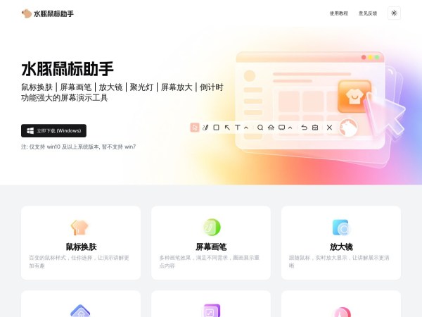 全称:水豚鼠标助手 - 鼠标换肤/屏幕画笔/放大镜/聚光灯/屏幕放大/倒计时/白板