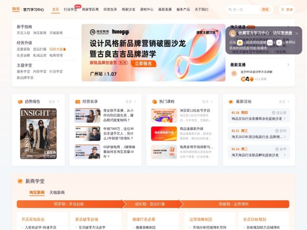 淘天商家获取最新资讯/活动/课程的线上学习阵地
