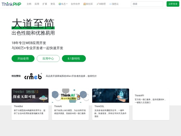 全称:轻量级PHP框架|专注WEB应用开发18年 · ThinkPHP