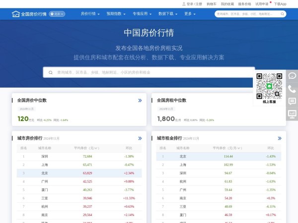 向社会发布全国各城市、城市各区域和各个楼盘小区的房价租金实况和供求信息,以及城市住房指标监测分析数据,支持在线分析和数据下载。