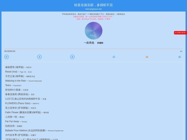 好听纯音乐网是中国最好的纯音乐交流平台,专注于分享好听的纯音乐、轻音乐、经典钢琴曲、中国轻音乐、新世纪音乐、背景音乐,是专业的纯音乐在线试听、MP3下载网站。