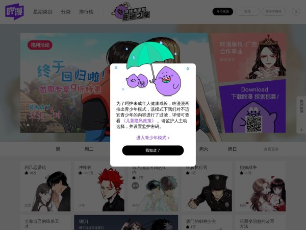 全球数字漫画服务平台,咚漫提供每日更新超过200个高清正版免费漫画,立志于为用户提供独家优质原创漫画,成为更适合二次元用户的漫画内容平台。