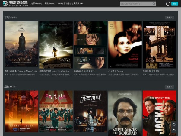 布雷克影院(全称:布雷克VIP精选影院 – 轻量级优质精选影院)于2025年01月15日收录在本站视频电影导航分类,并成功建立了索引服务,为用户提供查找/检索服务。