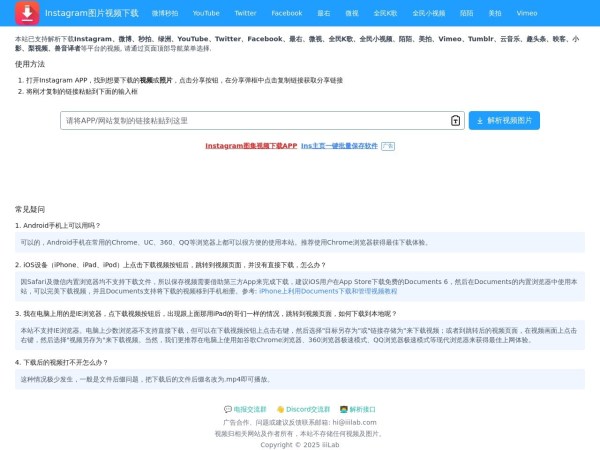 Instagram图片视频下载(全称:Instagram图片视频解析下载 - 保存Instagram视频和照片到手机、电脑)于2025年01月18日收录在本站视频下载导航分类,并成功建立了索引服务,为用户提供查找/检索服务。