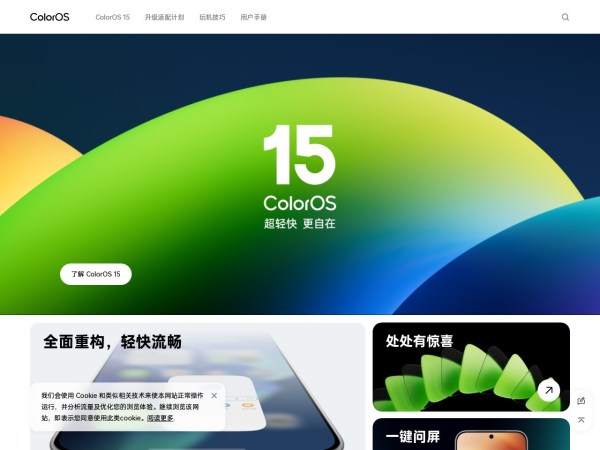 ColorOS(全称:ColorOS 15 超轻快,更自在)于2025年01月18日收录在本站软件系统导航分类,并成功建立了索引服务,为用户提供查找/检索服务。
