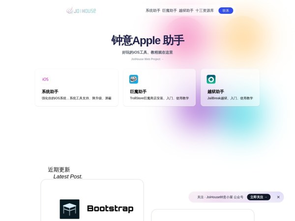 钟意Apple助手(全称:钟意Apple助手-钟意小屋JoiHouse)于2025年01月18日收录在本站软件系统导航分类,并成功建立了索引服务,为用户提供查找/检索服务。