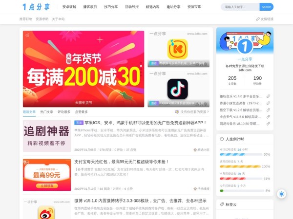 一点分享(全称:一点分享 - 专注优质实用精品资源分享!)于2025年01月19日收录在本站资讯科技导航分类,并成功建立了索引服务,为用户提供查找/检索服务。