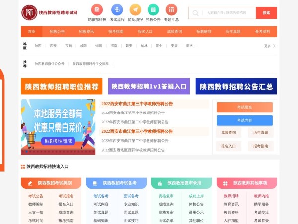 陕西教师招聘考试网(全称:陕西教师招聘考试网_陕西教师招聘报名)于2025年01月20日收录在本站学习考试导航分类,并成功建立了索引服务,为用户提供查找/检索服务。