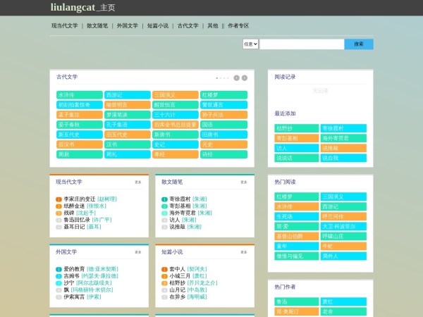 一个在线阅读网站。包含现当代文学,散文随笔,外国文学,短篇小说,古代文学,其他6个模块,网站结构简单,没有广告、弹窗,收录小说都为优质、经典小说