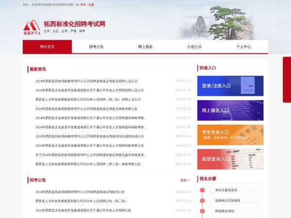 拓西标准化招聘考试网(全称:网上报名-拓西标准化招聘考试网)于2025年01月20日收录在本站学习考试导航分类,并成功建立了索引服务,为用户提供查找/检索服务。