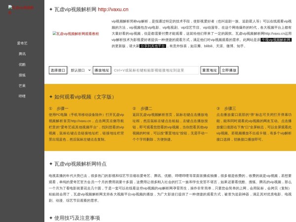 全称:视频解析-vip解析-vip视频在线解析网站-瓦虚