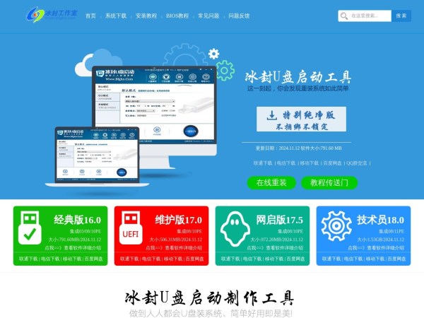 冰封U盘启动(全称:冰封|冰封系统|U冰封_冰封u盘启动盘制作工具_冰封工作室_win7纯净版_win10纯净版冰封官网)于2025年01月26日收录在本站工具其他导航分类,并成功建立了索引服务,为用户提供查找/检索服务。