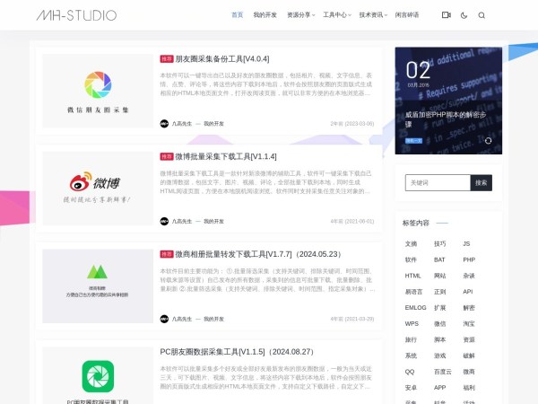 MH-Studio(全称:MH-Studio|微信朋友圈采集备份下载工具|微信朋友圈采集同步转发工具|微商相册批量转发下载工具)于2025年01月26日收录在本站软件其他导航分类,并成功建立了索引服务,为用户提供查找/检索服务。