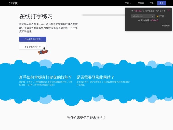 一款专业的在线打字练习网站(金山打字通在线练习),提供键盘指法练习、打字速度测试、经典打字游戏、双拼输入法打字练习等多个功能,帮助用户快速掌握盲打键盘的指法,提升打字速率和准确性。