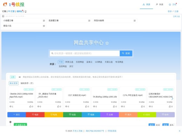 网盘共享中心(全称:网盘共享中心 | 1号线报)于2025年02月11日收录在本站网盘网盘搜索导航分类,并成功建立了索引服务,为用户提供查找/检索服务。