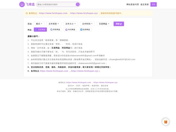 飞猪盘(全称:飞猪盘 - 网盘搜索引擎)于2025年02月14日收录在本站网盘网盘搜索导航分类,并成功建立了索引服务,为用户提供查找/检索服务。