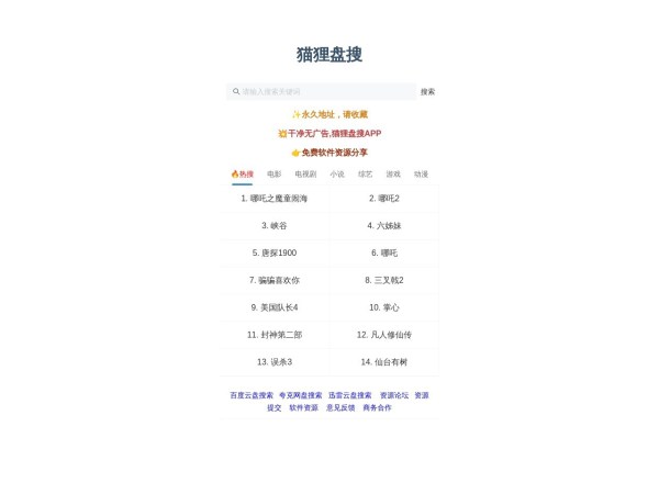 猫狸盘搜(全称:猫狸盘搜 - 阿里云盘搜索神器)于2025年02月15日收录在本站网盘网盘搜索导航分类,并成功建立了索引服务,为用户提供查找/检索服务。