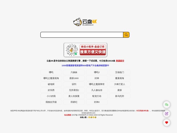 云盘4K(全称:云盘4K-综合网盘搜索)于2025年02月15日收录在本站网盘网盘搜索导航分类,并成功建立了索引服务,为用户提供查找/检索服务。
