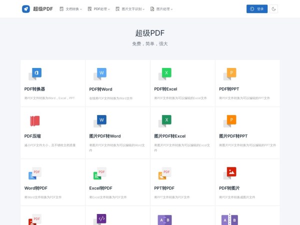 超级PDF(全称:超级PDF|简单强大的PDF在线处理工具)于2025年02月16日收录在本站工具文档处理导航分类,并成功建立了索引服务,为用户提供查找/检索服务。