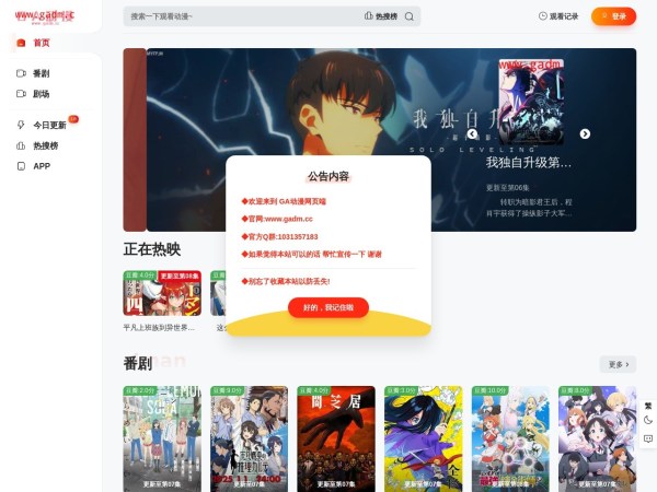 GA动漫(全称:GA动漫 在线动漫网站!为动漫爱好者提供最好的追番体验 ~)于2025年02月20日收录在本站视频动漫导航分类,并成功建立了索引服务,为用户提供查找/检索服务。
