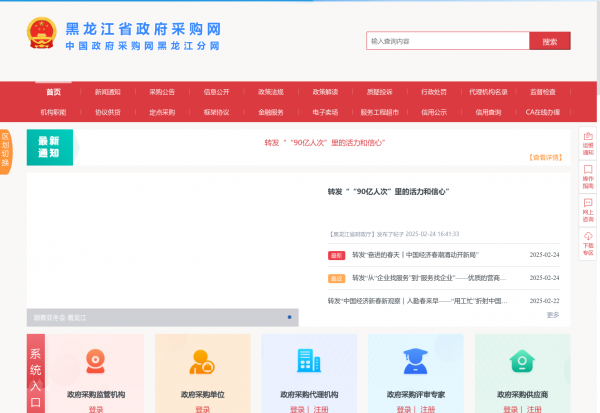 黑龙江省政府采购网(全称:黑龙江省政府采购网)于2025年02月24日收录在本站生活政府导航分类,并成功建立了索引服务,为用户提供查找/检索服务。