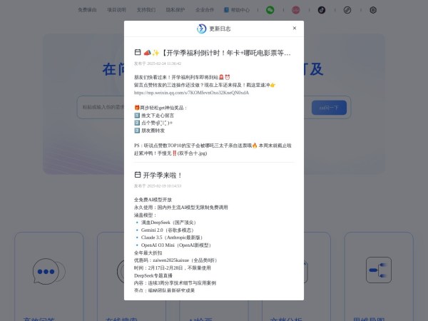 在问社区是一个以科技普及为使命的免费开源社区,致力于为广大用户提供世界知识和专业服务。在问社区集成了众多优秀的大语言模型,用户可以轻松地获取和使用这些模型实现自然语言处理、智能问答、文本创作等多种功能。此外,我们还支持AI作画、文档分析、在线检索和思维导图等功能,帮助用户更高效地获取和处理信息。在问社区秉持开放、共享的精神,欢迎广大用户加入我们,共同探索科技的魅力。