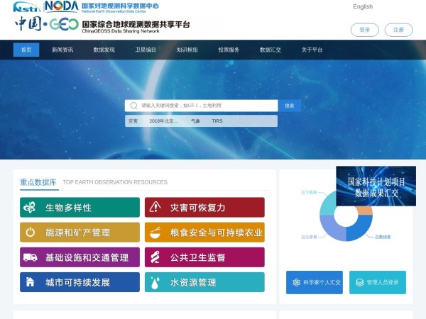 由国家遥感中心牵头,联合10余家国内主要卫星数据中心、科研单位及企业建立的综合地球观测数据资源的共享平台,由中国科学院空天信息研究院承担运维工作。