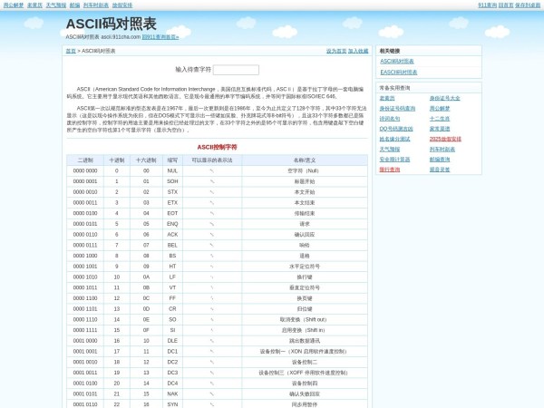 全称:ASCII编码对照表_911查询