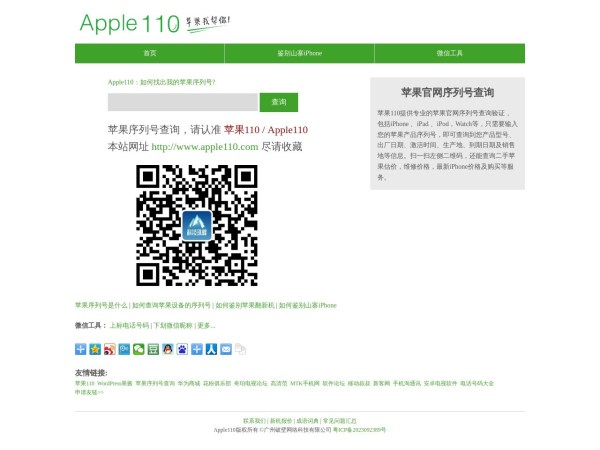 Apple110,提供最专业的苹果序列号查询保修及验证,数据与苹果官网同步,支持的产品包括iPhone、iPad等,可查询到您产品型号、出厂日期等信息,帮助您防欺诈、防翻新、防山寨,果粉查询必备!