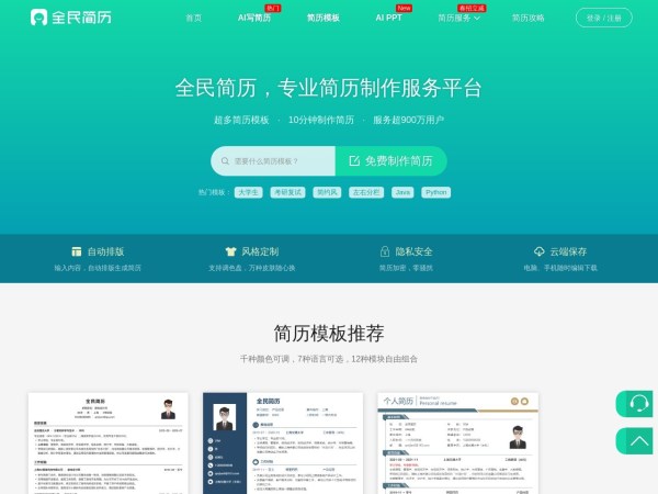 全民简历(全称:专业简历制作_个人简历模板大全 - 全民简历网)于2025年03月12日收录在本站办公招聘导航分类,并成功建立了索引服务,为用户提供查找/检索服务。